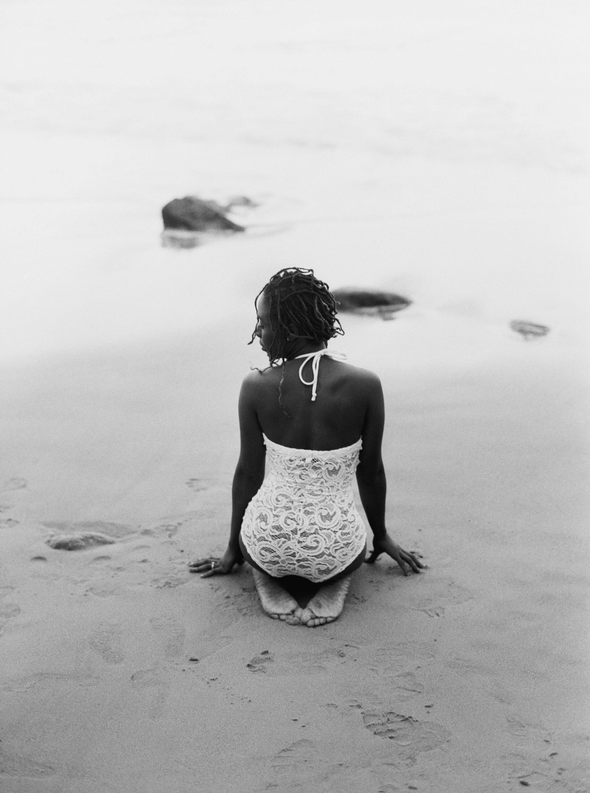 color-grey color-black cat-people cat-nature and outdoors tag-woman tag-beach tag-shore tag-sand tag-soft focus tag-film